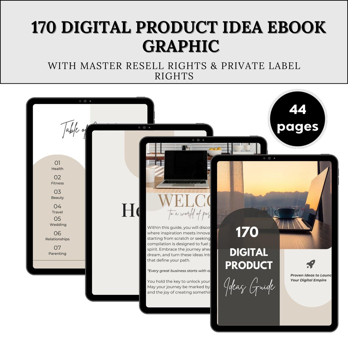 - 54 pages filled with 170 profitable digital product ideas